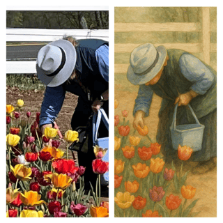 Prompt: Upload a photo and then ask ChatGPT to make it look like a Beatrix Potter(or any artist) painting. See example below