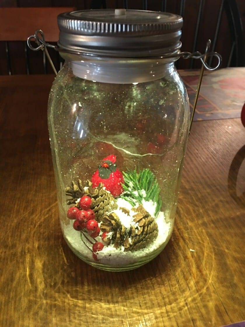 We love using Mason Jars with Lighted Lids to create snow scenes that light up