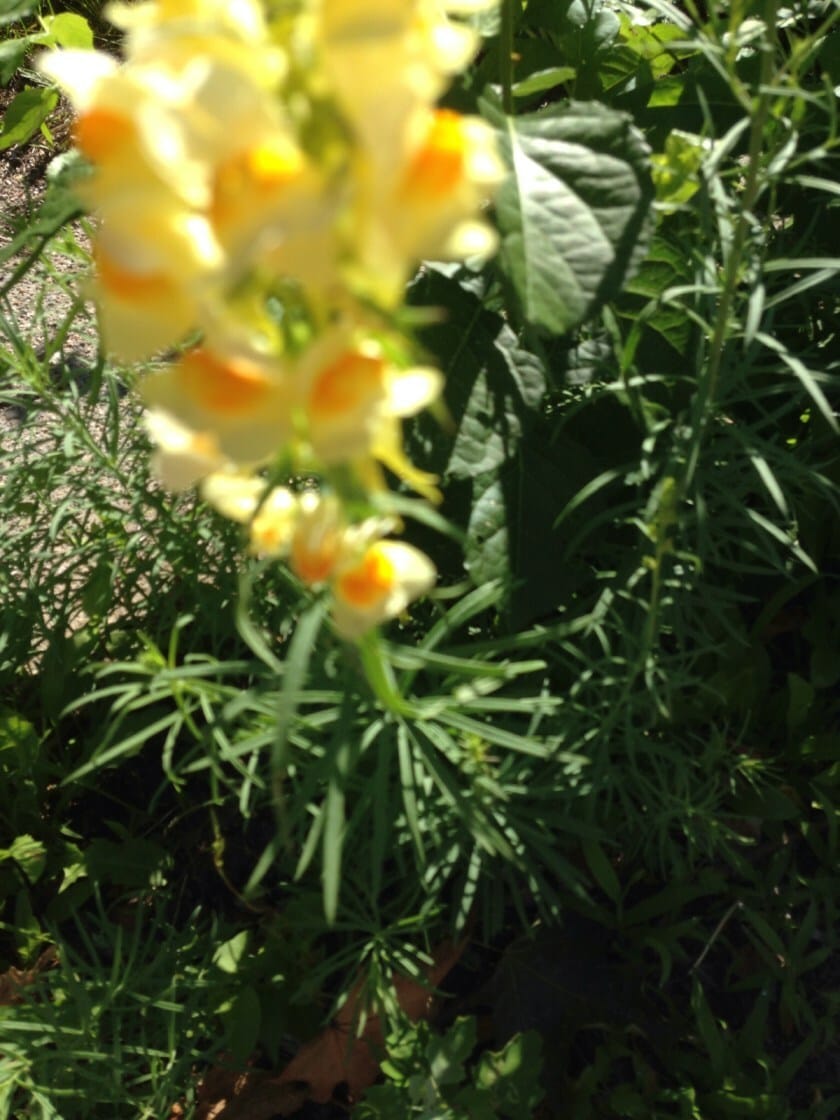 Butter and eggs snapdragons and painted turtles on our morning dog walk