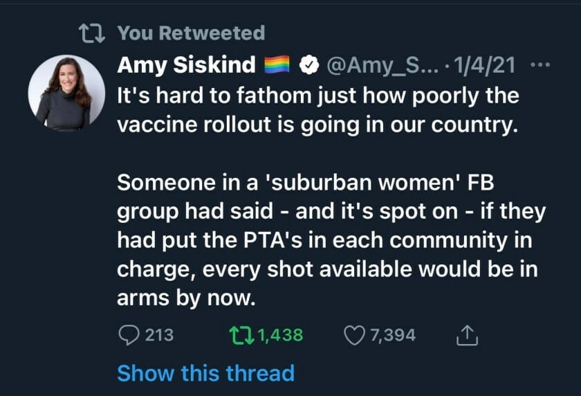 Here’s one scenario – When I called my cancer center in January to reschedule a radiology appointment, they asked me if I had been vaccinated yet. No. They gave me a number to call to schedule an vaccine appointment. When I called that number, the receptionist told me I had to email and ask for an appointment. When I emailed to ask for an appointment I received a reply that they weren’t making appointments anymore:) You can’t help but laugh out loud at that
